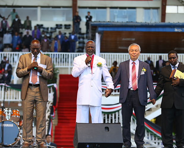 「私たち皆で、ケニアの平和のために祈りましょう。私は真の神様の人であるパク・オクス牧師を尊敬し、全面的に後援します。その方と一緒に、ケニアに神様のみことばを伝えたいです。」-2014年、ナイロビで開催された国家平和聖書集会(National Peace Bible Crusade)に出席したキトンガ牧師の挨拶の辞の中