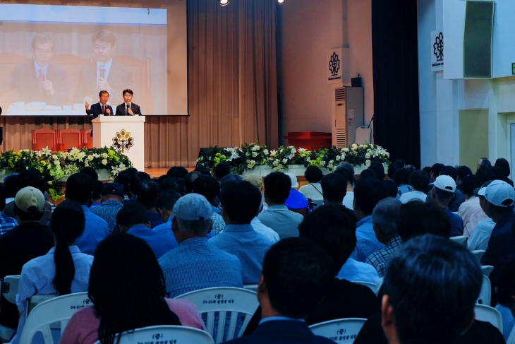 金曜日の午前にはグッドニュース宣教会の設立者パク・オクス牧師の特別講演があった。 パク・オクス牧師は30年前、中国の姜家店郷で開かれた中国人修養会で福音を伝えたことがある。司会者が、その時の修養会に参加した方が今もここにいるのかと尋ねると、多くの兄弟姉妹が手を挙げた。1995年、中国人修養会で救われた彼らが、2025年に韓国のキムチョンで開かれたサマーキャンプで、再びパク・オクス牧師の御言葉を聞く感動的な瞬間だった。パク・オクス牧師は使徒の働き9章の御言葉を通して「イエス様が私たちの罪を赦されたことを知れば、イエス様との仲が近くなり私たちの人生が変わる。罪の赦しを受けたら私たちとイエス様が同じになり、イエス様が私たちの人生の中で働かれる」とし、福音と共に信仰の人生を送るようにする神様について伝えた。