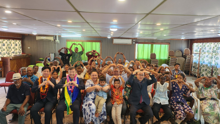 ▲ソロモン諸島のグッドニュースホニアラ恩恵教会の聖徒たちとともに