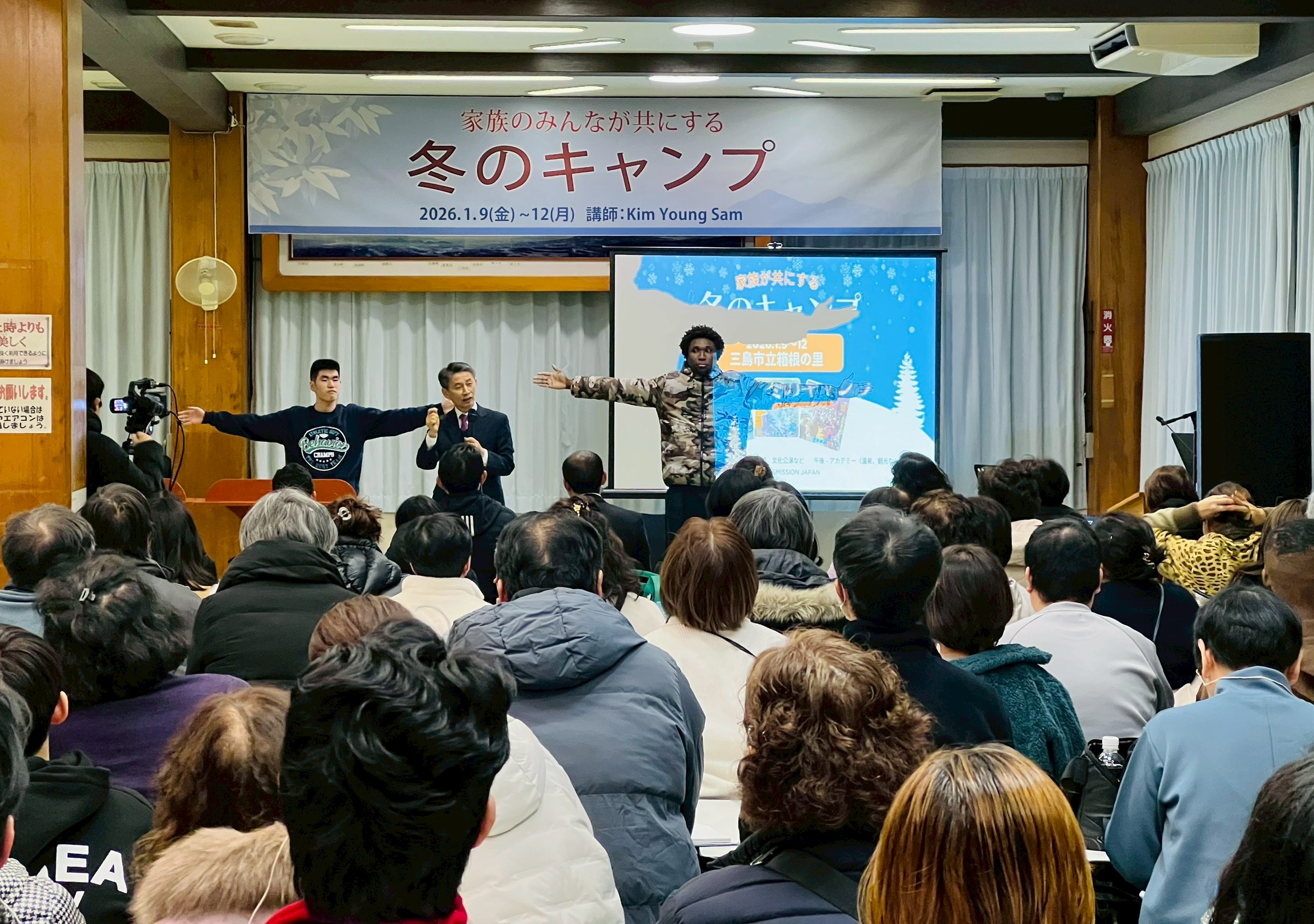 1月9日から12日まで三泊四日間、箱根少年自然の家において、グッドニュース日本教会の冬のキャンプが行われた。御言葉を通して新たな力を得たいという思いと、また全国の聖徒たちに会えるときめきを胸に、日本各地から参加者たちは富士山の見える箱根に向かった。外部教会の牧師を含め、約250人がキャンプに参加した。