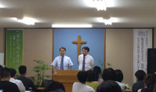グッドニュース 国内・外のグッドニュース宣教会のすべてのニュースを見ることができます。 [九州]神様の中ですでに成し遂げられた世界 2日しか経ってないと思ったのにもう最後の日になりました。 午前のマインド講演ではマーチン・ルターの宗教改革について話しながら福音を伝えました。 新しい人が来てマインド講演を聞きながら「イエス様がこの世に来た理由を分かりました」と話しながら福音を受け入れました。 集会の最後の時間、キム・ソンフン牧師先生は太陽の光が地球まで届くには8分30秒がかかるから、今私たちが見ている光は8分30秒前の光だと話し... 2017.05.06 ㆍ Views 1762 [東京]神様がくださった永遠の命〜3日目 5月4日、青いドレスを身にまとった韓国・大邱のアレグリア合唱団の日本語合唱によって、3日目のフォーラムが幕を開けました。当合唱団はこのフォーラムのために男性のみの重唱や男女混声、アカペラなど多彩な公演を準備しました。特に日本語での公演は、合唱団とフォーラム参加者との距離を縮めました。 ↑アレグリア合唱団の公演 この日、講師のキム・ジンソン牧師は「外に出れば澄んだ空気がある。その空気が無償であるよう... 2017.05.06 ㆍ Views 1676 [大阪]問題が問題でなくなる瞬間 太陽が眩しい5月4日、大阪教会大伝道集会は今日で3日目となりました。 講師牧師の話を聞いて幸せそうに微笑む観客 午前は、ルカの福音書15章の放蕩息子の兄の話をもとに、話されました。 放蕩息子の兄は、自分勝手に生きて帰ってきた弟に対して優しく接する父の姿を見て憎みました。なぜなら、自分は賢く生きてきたのに父は自分には羊一匹もくれなかったと思っていたからでした。しかし、ルカの福音書15章31節の御言葉... 2017.05.06 ㆍ Views 1707 [九州]失った私の霊魂を探すイエス様 5月3日、まるで夏のように暑くなった山王公園で2回目のマインド講演が行われました。 アフリカの服を着てアカペラする大学生は、皮膚は黄色だけどアフリカ人だと思われるぐらいよかったです。 キム・ソンフン講師は昨日のマインド講演を復習しながら続けて挑戦と連合について話しました。 変化-他の人の良いマインドを受け入れなさい そのまま受け入れれば良い 挑戦-何でも避けずにぶつかれば良い 連合-共にしながらお... 2017.05.06 ㆍ Views 1675 [東京]まぶしい笑顔があふれた2日目 緑が眩しい5月3日、昨日に引き続きバイブル・クルセードフォーラムが行われました。 本日より午前の部と午後の部に分けて行事が進められます。アレグリア・アンサンブル合唱団が披露した「故郷の春」は春を迎え、自然と故郷を思い起こすような穏やかな音色で構成され、参加者の心に感動をプレゼントしました。続いて、東京恩恵教会のゆり合唱団による男女混声の美しいハーモニーの讃美歌が会場いっぱいに鳴り響きました。 講師... 2017.05.05 ㆍ Views 1608 [大阪]神様は常に私達と共におられます 福音で熱くなっている大阪教会の大伝道集会は今日で2日目となりました。 今日からは午前と午後二回に分けて集会が行われました。 今日も喜びニュース北プサン教会から来られたソン ムソン牧師によって御言葉が伝えられました。 北プサン教会ソン ムソン牧師 午前はマタイの福音書20節1章〜16章の御言葉を伝えてくれました。 ここでは早朝にぶどう園に入った労働者と夕方5時に入った労働者について話しています。ここ... 2017.05.04 ㆍ Views 1577 [東京]聖書を学ぶ「バイブル・フォーラム」初日 2017年5月2日、ゴールデンウイークが始まり初夏の風が感じられる中、東京でバイブル・グルセードフォーラムが行われました。韓国からキム・ジンソン牧師を招き、5日まで4日間の日程で行われる本フォーラムには初日から多くの参加者が訪れました。 ↑初日の夜、フォーラムを尋ねた参加者たち 「聖書を正しく知り、聖書について考える」という趣旨で開かれた本フォーラムには、韓国・大邱からアレグリア・アンサン... 2017.05.04 ㆍ Views 1666 [大阪]私があなたを休ませます!! 5月2日 火曜日、ゴールデンウィークは大阪大伝道集会でスタートしました。 大阪大伝道集会は2日から5日まで、大阪喜びニュース教会で毎日午前10:30、午後7:30 2回に分けて行われます。 韓国の釜山教会から来られたソン•ムソン牧師が御言葉を伝えました。 ソン•ムソン牧師はヨハネの福音書5章の38年間病を患った人の話の内容を元に福音を伝えました。 ソン•ムソン牧師は、2種類の病人について説明しまし... 2017.05.04 ㆍ Views 1634 [九州]私たちの値打ちはイエス様 5月2日の朝、山王公園にある博多市民センターで涼しい風と共にマインド講演が始まりました。 大学生たちのダンスを見ると、明るい笑顔で参加した人々の顔も笑顔になりました。 キム・ソンフン講師は「変化」のタイトルで講演を始めました。 "土は天に対して100%開いているから美しい物を出します。私には喜びがなくても喜びを受け入れれば変化が始まります" 変化は私からできるのではなく、外から受け入